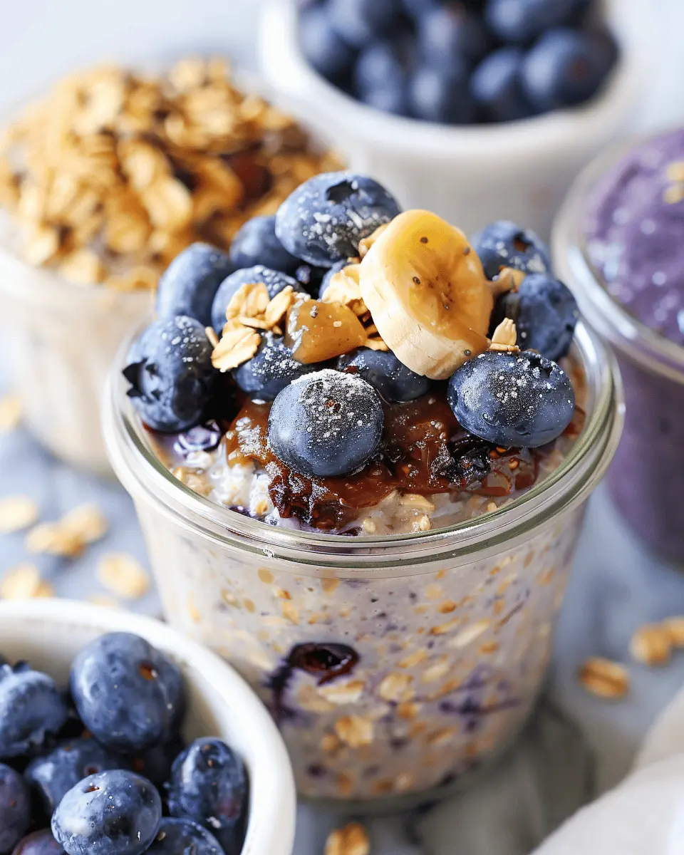 Transform your blueberry muffin overnight oats into a delightful culinary experience with some fun toppings! Consider adding: