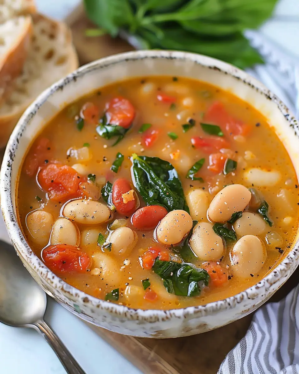 A delicious and easy Cannellini Bean Soup recipe that provides comfort and warmth in every spoonful.