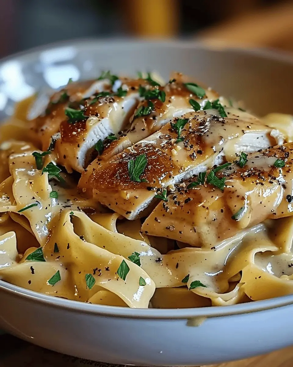 Feeling indulgent? Transform your chicken with buttered noodles into a creamy Chicken Alfredo. Simply prepare fettuccine noodles and create a rich sauce using: