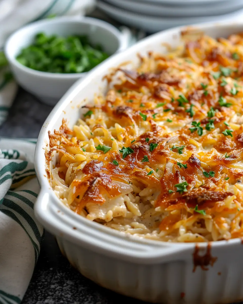 Now, let’s dive into one of the ultimate comfort dishes: the French Onion Chicken Orzo Casserole. This dish brilliantly combines the flavors of caramelized onions, tender chicken, and creamy orzo pasta into one scrumptious bake. Imagine coming home and filling your kitchen with the delightful aroma of slow-cooked onions.