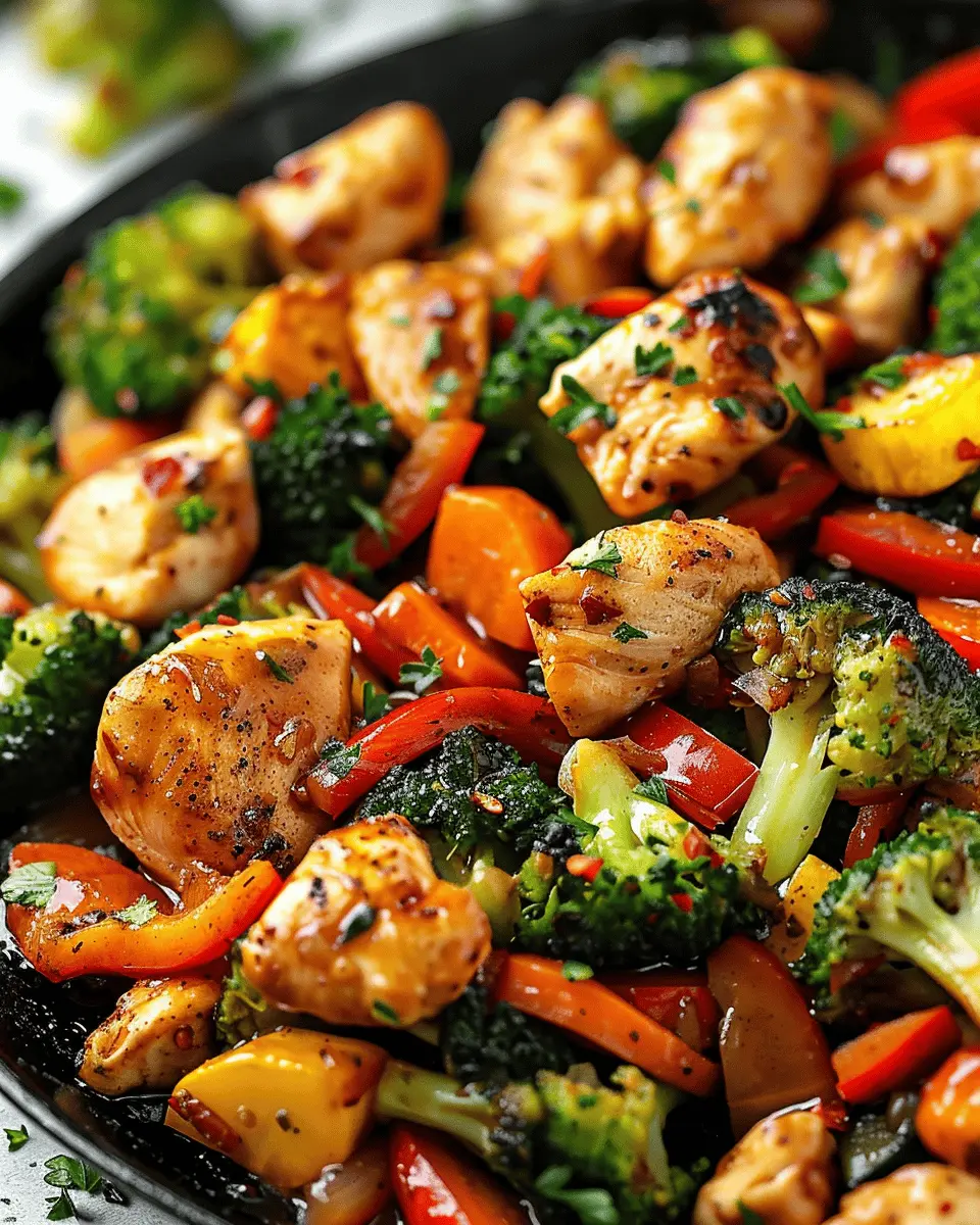 A delicious and nutritious meal featuring chicken and assorted vegetables, perfect for a quick weeknight dinner.
