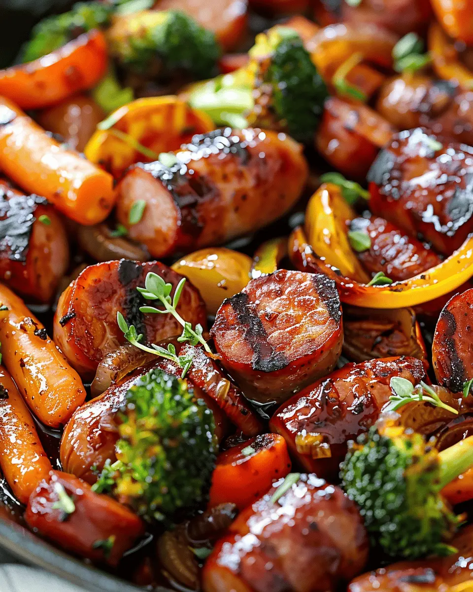 Enjoy a delicious and easy-to-make one-pan meal with honey garlic kielbasa and fresh veggies. Perfect for busy weeknights!