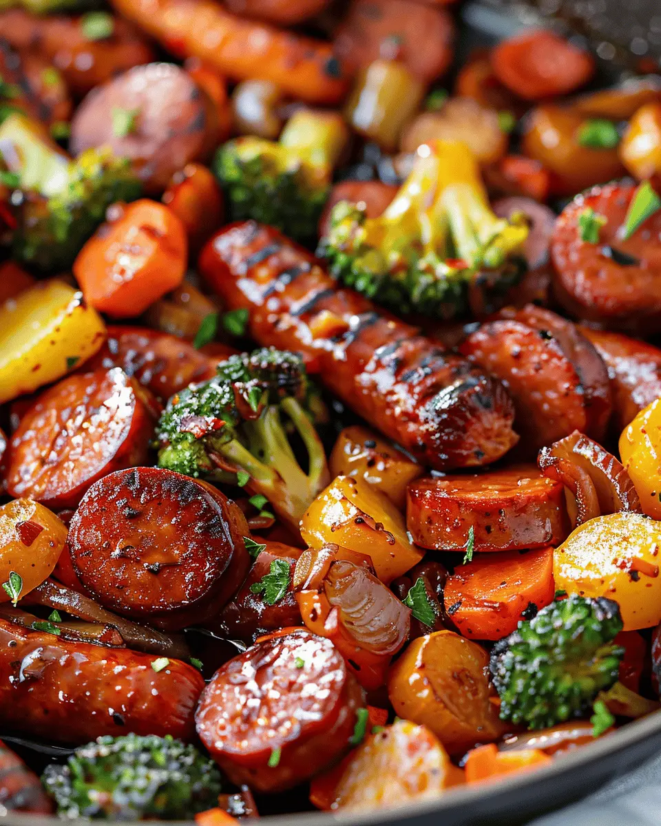 PrintOne-Pan Honey Garlic Kielbasa & Veggies: Easy Weeknight Delight