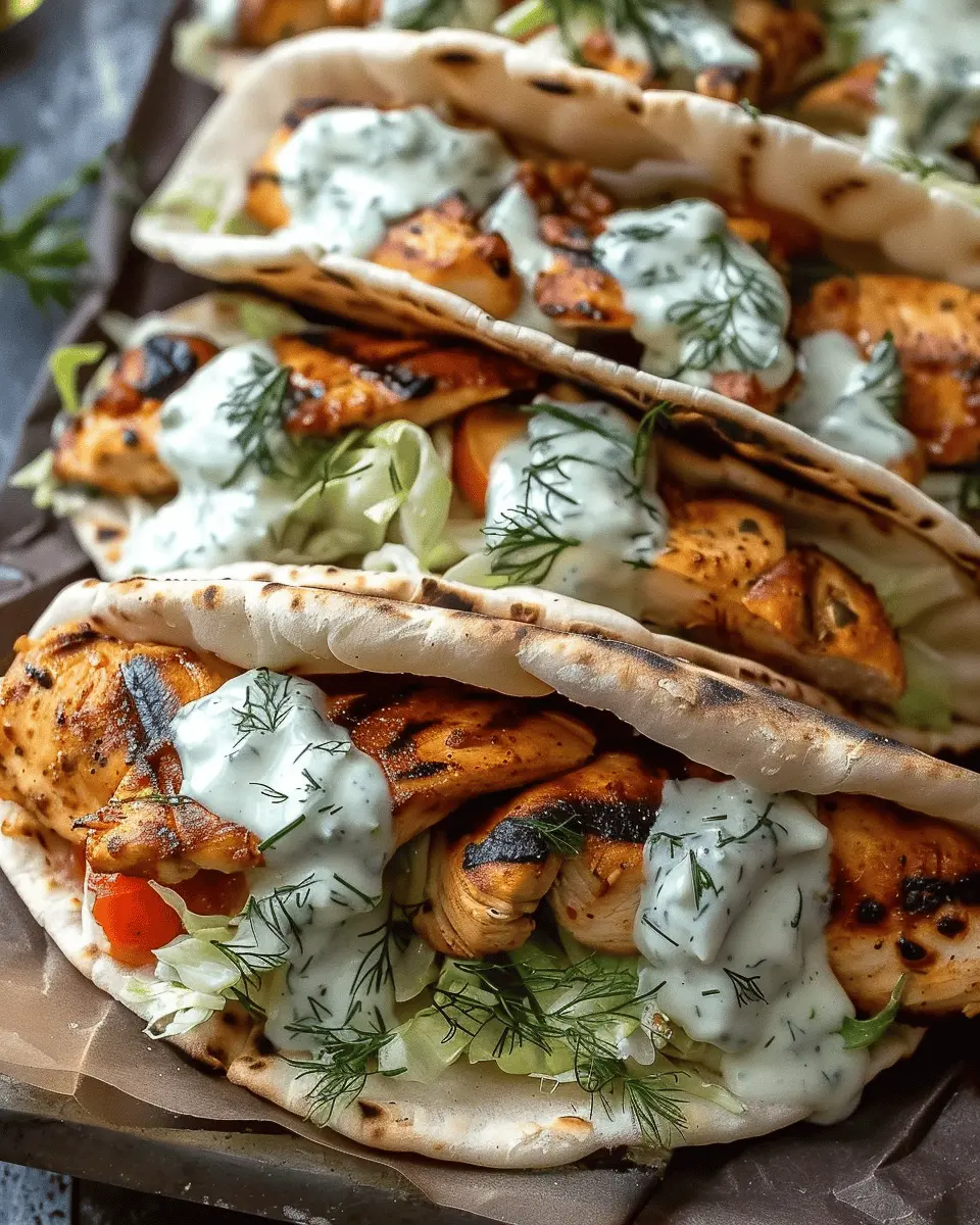Once your chicken is done, remove it from the oven, and let it rest for a few minutes. Then, slice or shred the chicken into bite-sized pieces. Now, build your pita by layering the roasted chicken and the fresh slaw. Don’t hold back—this is your opportunity to make these sheet pan chicken pitas as hearty as you like!