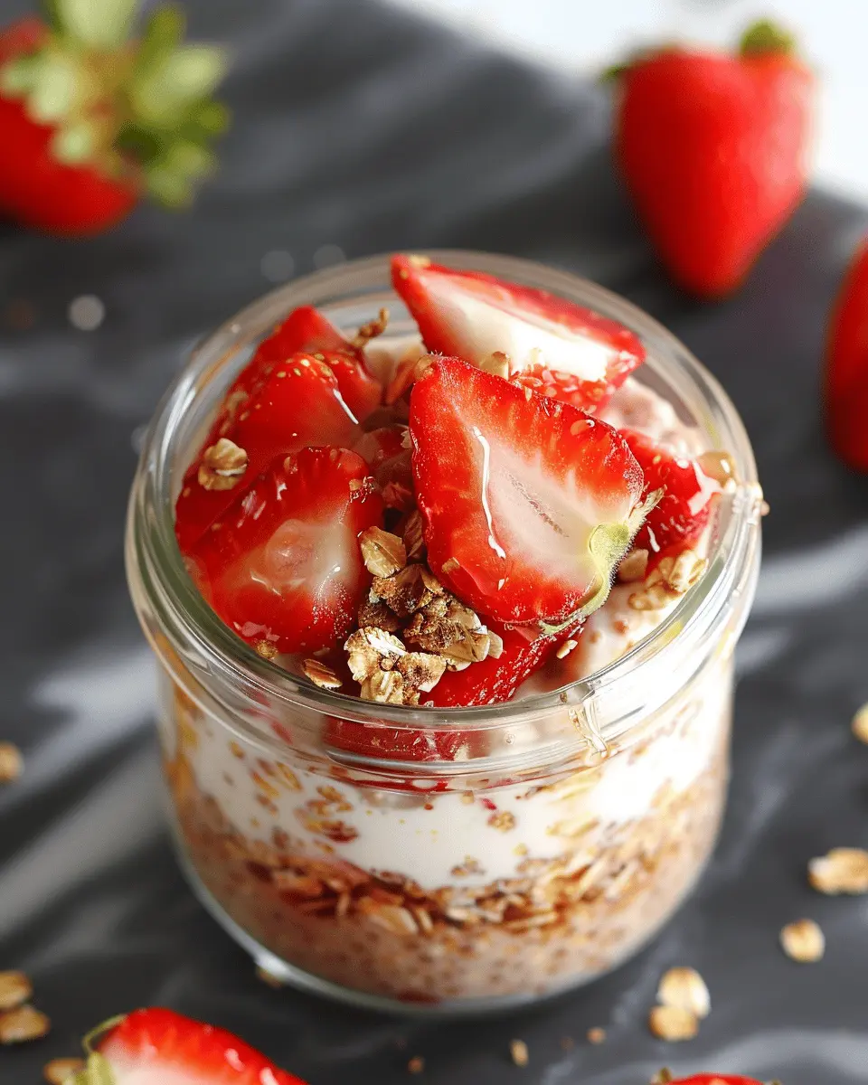 Absolutely! Meal prepping is one of the best ways to ensure you always have a healthy breakfast ready to go. You can prepare multiple servings at once and store them in individual jars or containers. Just remember to layer the strawberries and any toppings like crushed graham crackers or nuts later, to keep them from getting soggy. You can also switch up the fruit based on what’s in season or on sale, adding variety to your breakfast routine!