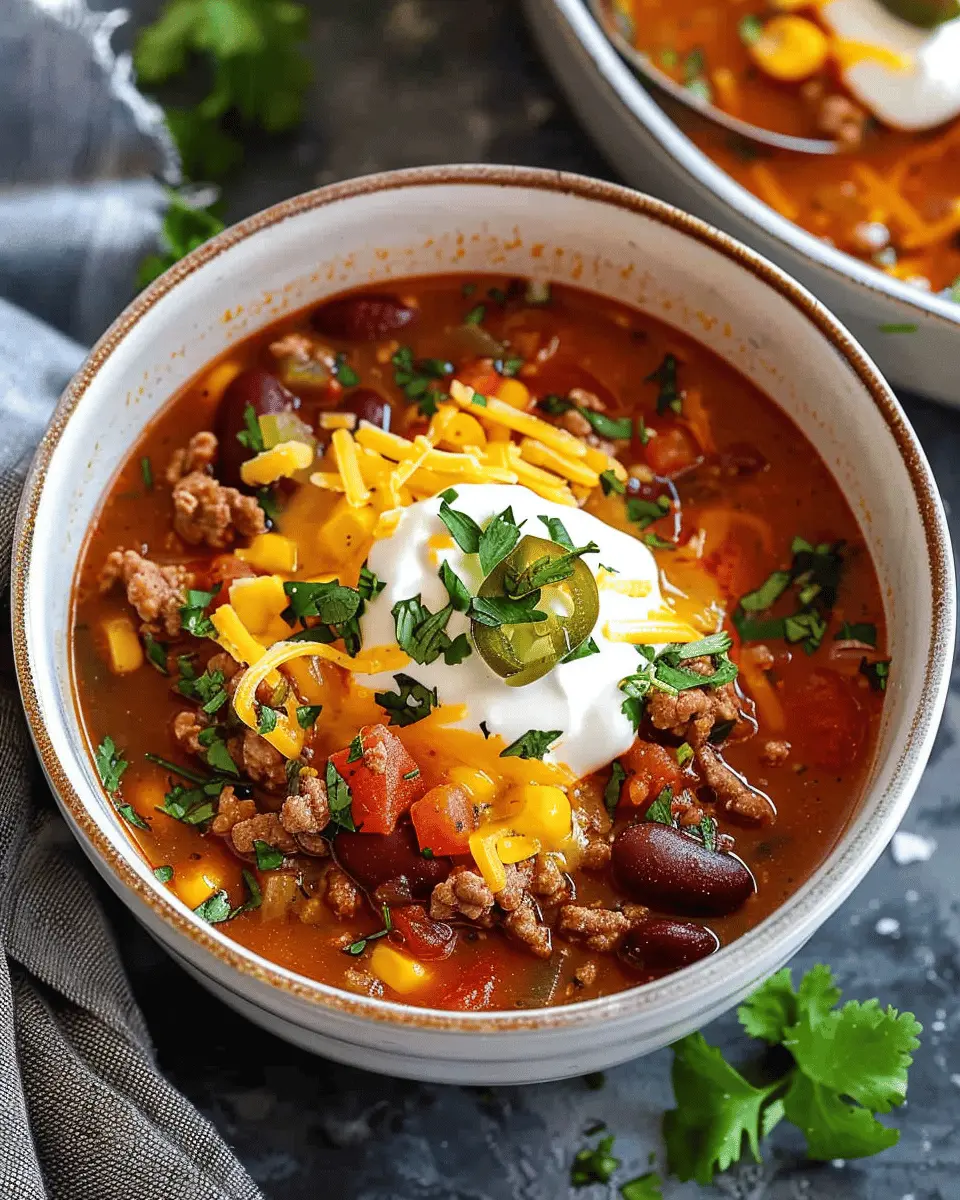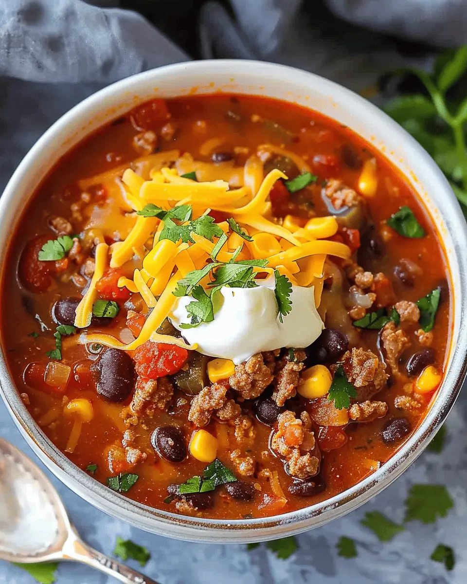 If you’re looking to swap meat for veggies while keeping the sy Taco Soup charm, you’re in for a treat! Consider using a medley of beans—like black beans, kidney beans, or chickpeas—for that protein punch. Vegetarian broth can replace the traditional meat stock, adding depth flavor without the meat. You might also want to toss in some chopped bell peppers, zucchini, or even corn to enhance the soup’s texture and taste. For a cheesy twist, dairy lovers can sprinkle some shredded cheese on top before serving, while vegan options can enjoy a sprinkle of nutritional yeast for that cheesy flavor.